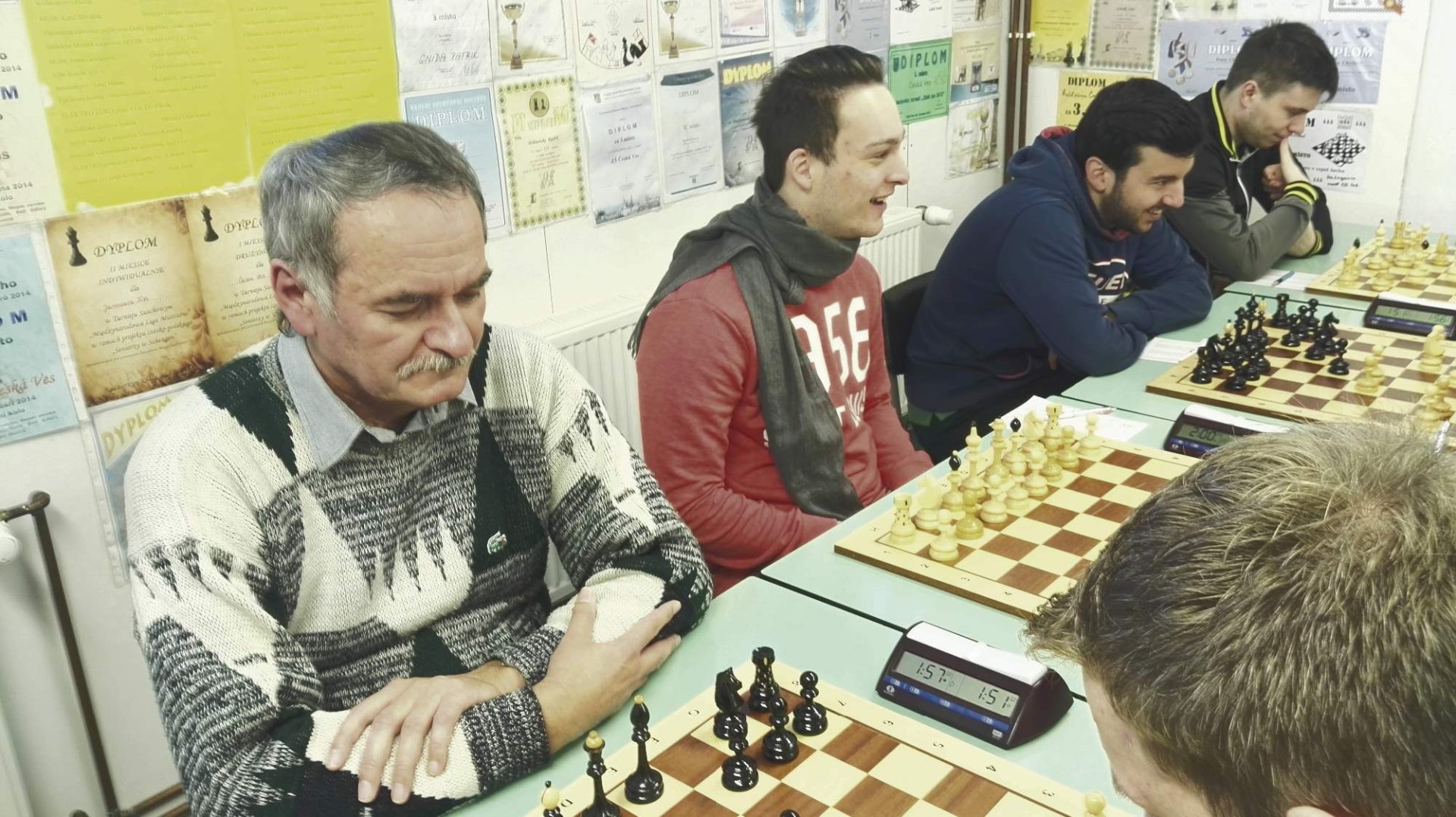 SK Řetězárna Česká Ves - ŠK JeseníkAhoj kamarádi, dnes bylo v České Vsi odehráno 5.kolo krajského přeboru družstev v šachu mezi SK Řetězárnou Česká Ves a Šachovým klubem Jeseník. Zápas začal lépe pro českoveské šachisty, když na 1.šachovnici porazil Patrik Gnida Svatopluka Hastíka a na 6.šachovnici Filip Loužil Bedřicha Táborského. Za stavu 2:0 pak postupně remizovali na 7.šachovnici Miroslav Čecháček s Bedřichem Výškem, na 5.šachovnici Zdeněk Rychlík s Lubomírem Matlochou st. a na 3.šachovnici Petr Chytil s Romanem Klabanem. Jesenickým za stavu 3,5 ku 1,5 pro Českou Ves svitla jiskřička naděje po vítězství Milana Šmoldase na 8.šachovnici, který po boji porazil Jřího Waláka a snížil na 3,5 ku 2,5. O osudu utkání tak měli rozhodnout zápasy na 2. a 4.šachovnici mezi Romanem Gavlasem a Zdeňkem Střechou a Karlem Volkem a Vladimírem Halamou. Oba však skončili remízou a českoveští tak zvítězili nejtěsnějším rozdílem 4,5 ku 3,5. I když bylo vítězství českoveských šachistů těsné, vzhledem k vývoji zápasu bylo spravedlivé. Všichni hráči zaslouží dík za čestné a korektní vedení boje na všech šachovnicích. Po dnešním derby A družstev v České Vsi čeká šachisty obou klubů příští týden v neděli derby B družstev, které proběhne od 9.hod. v klubovně ŠK Jeseník.