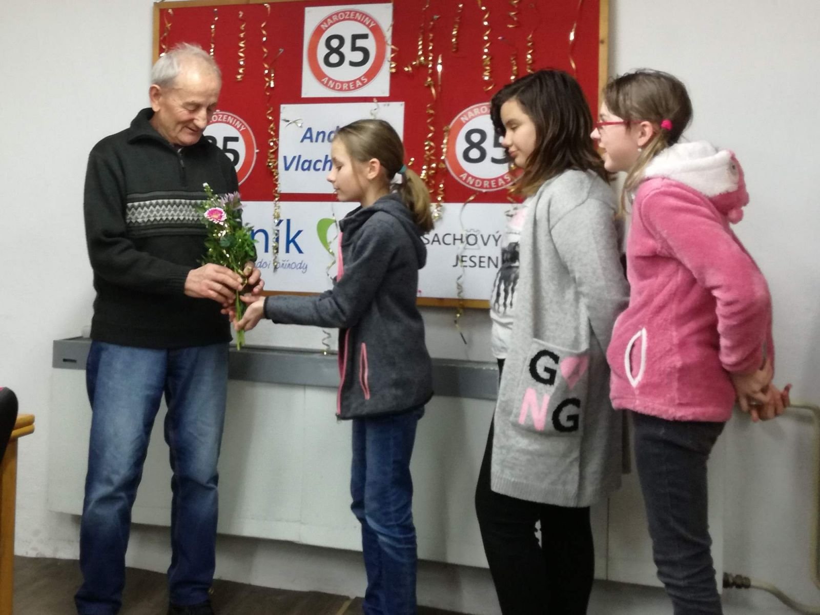 Nestor našeho klubu Andreas Vlachopulos oslavil 85. narozeninyVe čtvrtek 28.2.2019 členové ŠK Jeseník ve své klubovně společně oslavili 85. narozeniny nestora našeho klubu Andrease Vlachopulose. Kromě toho, že byl oslavenec dlouhá létá obětavým správcem klubovny byl také platným hráčem. Dodnes předvádí na šachovnici i přes svůj věk neuvěřitelné výkony. Oslavy začaly narozeninovou písní od Svěráka a Uhlíře, kterou Andrejovi zapěli všichni zúčastnění. Po gratulacích následoval turnaj v bleskovém šachu, ve kterém byli nejlepší mezi děvčaty Sára Tschuliková a mezi chlapci Karel Dočkal. Hlavní turnaj dospělých vyhrál po velkém boji Svaťa Hastík. Speciální cena nejlepšímu hráči do 8. let byla udělena Natálii Dabrowské. Během oslav panovala mezi přítomnými výborná nálada a jelikož jubilant zajistil všem také výborné občerstvení oslavám skutečně nic nechybělo. - fotografie z oslav naleznete zde | |