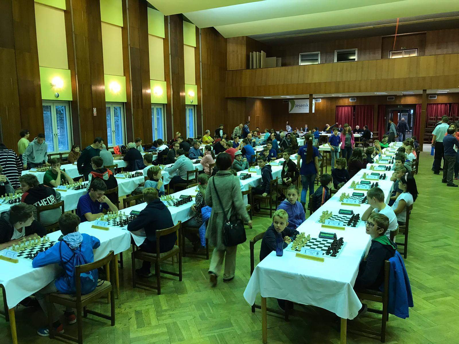 1. ročník Memoriálu Svatopluka Hastíka je úspěšně za námi!V sobotu 12.10.2019 byl ve společenském sále budovy IPOS městského úřadu Jeseník odehrán historicky 1. ročník Memoriálu Svatopluka Hastíka, který zorganizoval Šachový klub Jeseník. Tento turnaj rovněž odstartoval Grand Prix mládeže ŠSOK v rapid šachu ročníku 2019/2020 a navázal tak na předchozí dva z let 2017 a 2018, které se hrály také v Jeseníku pod názvem Otevřený krajský přebor mládeže v rapid šachu. Hrálo se švýcarským systémem na 7 kol, tempem 2 x 15 minut s přídavkem 3 vteřiny na každý tah. Novinkou turnaje byl online přenos prvních 15 šachovnic skupiny OPEN (viz odkaz zde). Hlavním rozhodčím turnaje byl Karel Volek a pomocnými rozhodčími Vladimír Halama, Martin Vaníček a Radomír Kolář, který rovněž zajišťoval online přenos partií včetně jejich projekce na velkoplošnou obrazovku. Letos byl turnaj poprvé, včetně mládežnických kategorií, otevřený pro všechny hráče z domova i ze zahraničí všech věkových skupin. Účast byla rekordní. Turnaje se zúčastnilo rovných 130 hráčů z Ostravy, Karviné, Krnova, Vrbna p/P, Starého Města, Zlína, Hošťálkové, Vyškova, Kroměříže, Lipovce, Skaličky, Horky nad Moravou, Prostějova, Vinar, Grygova, Brankovic, Šternberku, Litovle, Loštic, Mohelnice, Zábřehu, Šumperku, Hrabišína, Zlatých Hor, Polska a domácího Jeseníku. Nejpočetnější zastoupení měl domácí ŠK Jeseník s 33 hráči (29 mládežníků a 4 dospělí). Hrálo se celkem ve čtyřech skupinách. V první skupině kategorie A se utkaly mladé naděje ročníku 2010 a mladší (27 hráčů), ve druhé skupině kategorie B ročníky 2008 a 2009 (25 hráčů), ve třetí skupině kategorie C ročníky 2006 a 2007 (18 hráčů) a ve čtvrté OPEN skupině hrála společně kategorie D dorostenců a dorostenek ročníku 2002 až 2005 s ostatními dospělými hráči (60 hráčů). V kategorii A zvítězila Květa Bouchalová (Agentura 64 Grygov-6 b.) před Janem Kotisou (SK Vyškov-5,5,b) a Kristianem Poljakem (ŠK Vinary-5 b.). Mezi děvčaty byla nejlepší již zmiňovaná vítězka celé kategorie Květa Bouchalová (Agentura 64 Grygov-6 b.), před Anastázií Vojčákovou (TJ Zlaté Hory-4 b.) a Eliškou Pluháčkovou (ŠK Jeseník-4 b.). Kategorii B ovládl Petr Novotný (SK Prostějov-6 b.) před Matějem Haraštou (ŠK Vinary- 5,5 b.) a Filipem Kopeckým (ŠK 1921 Zábřeh-5 b.). Vítězkou této kategorie mezi děvčaty se stala Beáta Březíková (ŠK Vinary-5 b.). před Lenkou Mikešovou (Agentura 64 Grygov-4 b.) a Karolínou Kolaříkovou (ŠK Jeseník 4.b.). V kategorii C potvrdil roli favorita a zvítězil Jan Cimburek (SK Řetězárna-5,5 b.) před Jakubem Urbanem (SK Prostějov-5,5 b.) a Adamem Zrůbkem (Agentura 64 Grygov-4,5 b.). Mezi děvčaty byla nejlepší Diana Tichá (ŠK Jeseník-3 b.) před Sárou Tschulikovou (ŠK Jeseník-3 b.) a Veronikou Ondráčkovou (ŠK Jeseník-1 b.). V kategorii D, která byla součástí skupiny OPEN, zvítězil Ondřej Vraj (Šachy Hošťálková-5,5 b.) před Martinem Valíčkem (ŠK Jeseník-4 b.) a Janem Kolářem (ŠK Mohelnice-4 b.). Mezi děvčaty zvítězila Gabriela Morongová (ŠK Jeseník-3 b.) před Michalou Gvizdovou (ŠK Jeseník 3 b.) a Dominikou Tschulikovou (ŠK Jeseník-3 b.). Ve skupině OPEN potvrdil skvělou formu z posledních dnů Patrik Gnida z SK Řetězárny Česká Ves, když v posledním kole v přímém souboji o 1. místo porazil Ladislava Vaňka a turnaj vyhrál se ziskem 6 bodů. Na 2. místě se umístil Krzysztof Banasik z Polska se 6 body, který na turnaji reprezentoval TJ Zlaté Hory. 3. místo vybojoval Stanislav Fiřt z ŠK HM Ostrava s 5,5 body. Mezi ženami byla nejlepší Petra Sochorová z ŠK Garde Lipovec s 5 body. Poháry vítězům předala paní Helena Hastíková, manželka Svatopluka Hastíka na jehož počest se turnaj hrál. Z jesenických šachistů je potřeba pochválit všechny zúčastněné, zejména naše nejmladší naděje. Pro některé z nich to byl první „velký turnaj“ a obstáli se ctí. Dále patří pochvala všem, kteří se umístili na medailových pozicích. V nejtěžším OPEN turnaji stojí za zmínku výkony našich tří borců a sice Bedřicha Táborského, Martina Valíčka a Gabriely Morongové. Bedřich Táborský v silné konkurenci obsadil skvělé 9. místo, když se mu v posledních dvou kolech podařilo porazit Jiřího Zapletala (ELO 1994) a Miroslava Hrbáčka (ELO 2001) a uhrát skvělých 5 bodů což je na 68-letého veterána obdivuhodný výkon. Martinovi Valíčkovi se i přes těžký los podařily uhrát 4 body což stačilo na celkově 22. místo v OPENU a výborné 2 místo v kategorii D, když porazil například Michala Müllera (ElO 1806) a v posledním kole Zdeňku Vránovou (ELO 1964). A nakonec Gabriela Morongová si zaslouží velké uznání za obrovskou vůli a bojovnost, kterou prokázala tím, že se i přes nezdar v prvních čtyřech kolech nevzdala a v neskutečném závěru vybojovala 3 vítězství, která ji katapultovala na 1. místo mezi děvčaty v kategorii D což je při její premiéře v této kategorii obrovský úspěch. Během turnaje panovalo v Jeseníku krásné slunečné počasí, díky kterému mohli pořadatelé účastníkům turnaje přichystat venku před bufetem posezení se zahradními šachy. Díky skvělé atmosféře, kterou vytvořili všichni účastnící turnaje, výborní rozhodčí Karel Volek, Radomír Kolář, Vladimír Halama, Martin Vaníček a ochotná a usměvavá obsluha v bufetu, proběhl turnaj bezproblémově a v naprosté pohodě. Poděkování patří všem členům Šachového klubu Jeseník, kteří s přípravou a organizací turnaje obětavě pomáhali, za finanční podporu Městu Jeseník, ŠSOK a v neposlední řadě patří velké díky sponzorům turnaje, zejména Priessnitzovým lé