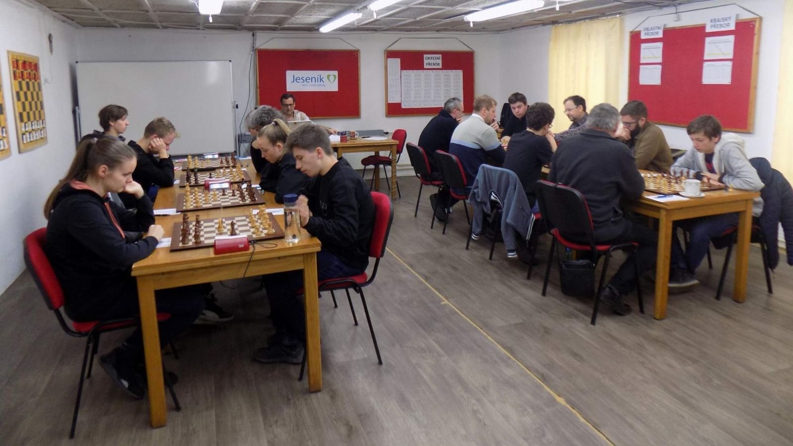 Po překvapivém vítězství nad grygovským Béčkem má naše Áčko opět reálnou naději na záchranuV neděli 16.2.2020 bylo v klubovně ŠK Jeseník odehráno 8. kolo Krajského přeboru mezi družstvy ŠK Jeseník A a Agentura 64 Grygov B. Domácí k tomuto zápasu bohužel nastoupili z různých důvodů bez pěti hráčů základní sestavy a tím do role favorita pasovali svého soupeře z Grygova. Utkání začalo tak trochu dle očekávání dvěma vítězstvími hostů. Nejprve na 8. šachovnici přehrál Michael Černý (ELO-1489) Míšu Gvizdovou (ELO-1152) a poté porazil na 3. šachovnici Jáchym Bareš (ELO-2089) Petra Vraspíra (ELO-1792), když si náš hráč po krásném útoku vytvořil nejdřív jasnou převahu, kterou však po sérii nepřesností a chyb ztratil a v podstatě daroval soupeři vítězství. I přes prohru si však za krásnou kombinační hru zaslouží Petr palec nahoru. Za stavu 2:0 pro hosty se podařil našemu družstvu připsat první bod, a to díky vítězství Patrika Gnidy (ELO-2233) nad Petrem Švancarou (ELO-2168) na 1. šachovnici. Patrik hrál profesorsky a systematicky posiloval svou pozici na královském křídle až se soupeři zhroutila obrana a vzdal se. Další bod a vyrovnání stavu na 2:2 přinesla partie na 7. šachovnici, kde Martin Valíček (ELO-1461) přehrál svou vrstevnici Emu Růžičkovou (ELO-1407). Martin získal výhodou dvou pěšců, které nakonec v koncovce prosadil a sympaticky hrající soupeřce nezbývalo nic jiného než partii vzdát. Do vedení 3:2 nás poslal Vladimír Halama (ELO-1726), který na 6. šachovnici přehrál přesnější hrou v koncovce Jiřího Čalu (ELO-1814). Vláďa potvrdil skvělou formu z minulých zápasů, a navíc se zdá, že z precizního defenzivních hráče se stává obávaný útočník. Po tomto vítězství přišla série dvou remíz. Na 5. šachovnici nedokázal v malinko lepší pozici Radomír Kolář (ELO-1616) rozbít obranu Nikoly Gregůrkové (ELO-1640) a tak se oba dohodli na remíze. Ráďa má s Nikčou dlouhodobě horší bilanci, a tak bral půlbod všema deseti. Další cenný půlbod vybojoval na 4. šachovnici Jan Kolář (ELO-1838), který se dostal do čistě remízové pozice s Vítězslavem Musilem (ELO-1907). Za stavu 4:3 jsme měli již jistou remízu, ale pro oživení naděje na záchranu jsme potřebovali spíše vítězství, a tak našemu Radovanu Gondekovi (ELO-1878), který hrál v poslední partii zápasu na 2. šachovnici s Jaroslavem Šobáněm (ELO-2095), nezbývalo nic jiného než uhrát alespoň remízu. Situace však nebyla vůbec růžová, protože hostující hráč měl o volného pěšce navíc, který navíc na páté řadě mocně podporovaný oběma věžemi působil dosti hrozivě. Ráďa se však nevzdal věží zaútočil na volném sloupci a k naší radosti chytil soupeřova krále do opakované pozice, ze které nebylo úniku (únik krále by znamenal prohru hostujícího hráče). Neuvěřitelné se tak stalo skutečností a po skvělém výkonu naše Áčko porazilo grygovské Béčko nejtěsnějším rozdílem 4,5 ku 3,5. Naděje na záchranu tak stále ještě žije! Všechny partie si můžete přehrát v odkaze zde kde můžete zapnout také šachový motor (engine) aby jste zjistili jak kdo během partie stál nebo v odkaze zde kde byl vysílán online přenos. - všechny výsledky 8. kola naleznete zde - průběžnou tabulku naleznete zde - fotografie ze zápasu naleznete zde - všechny partie ve formátu PGN si můžete stáhnout níže v sekci "Ke stažení"