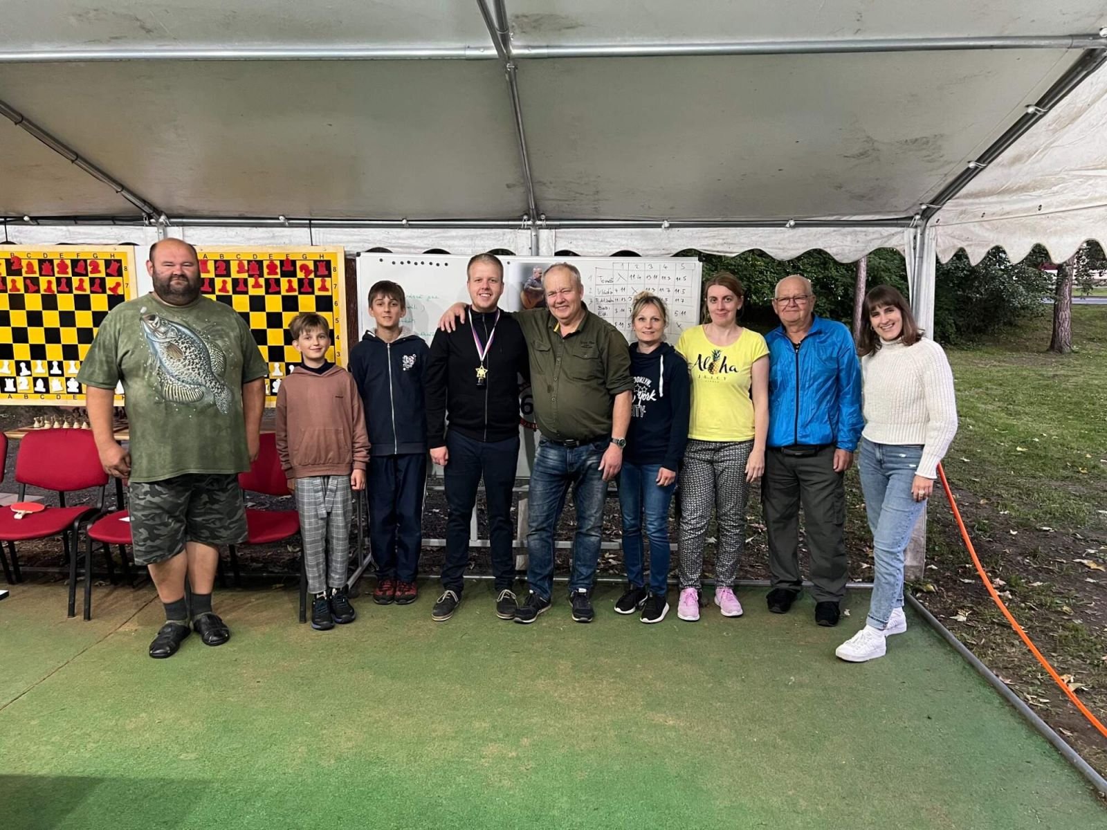 Ve čtvrtek 1.9. jsme s Jardou Halamou oslavily jeho 60. narozeninyVe čtvrtek 1.9.2022 po krátké členské schůzi členové Šachového klubu Jeseník ve své klubovně společně oslavili 60. narozeniny Jardy Halamy dlouholetého člena, výborného šachisty a kamaráda. Jarda je součástí našeho klubu od svého dětství už téměř půlstoletí. Oslavy, kterých se zúčastnilo téměř 30 gratulantů začaly narozeninovou písní od Svěráka a Uhlíře, kterou oslavenci zapěli všichni zúčastnění. Po gratulacích následoval turnaj v bleskovém šachu ve stolním tenise na počest oslavence. Bleskový turnaj vyhrála Veronika Ondráčková a stolní tenis Vláďa Halama syn oslavence. Během oslav panovala mezi přítomnými výborná nálada a jelikož jubilant zajistil všem také výborné a bohaté občerstvení oslavám skutečně nic nechybělo. - fotografie z oslav naleznete zde | |