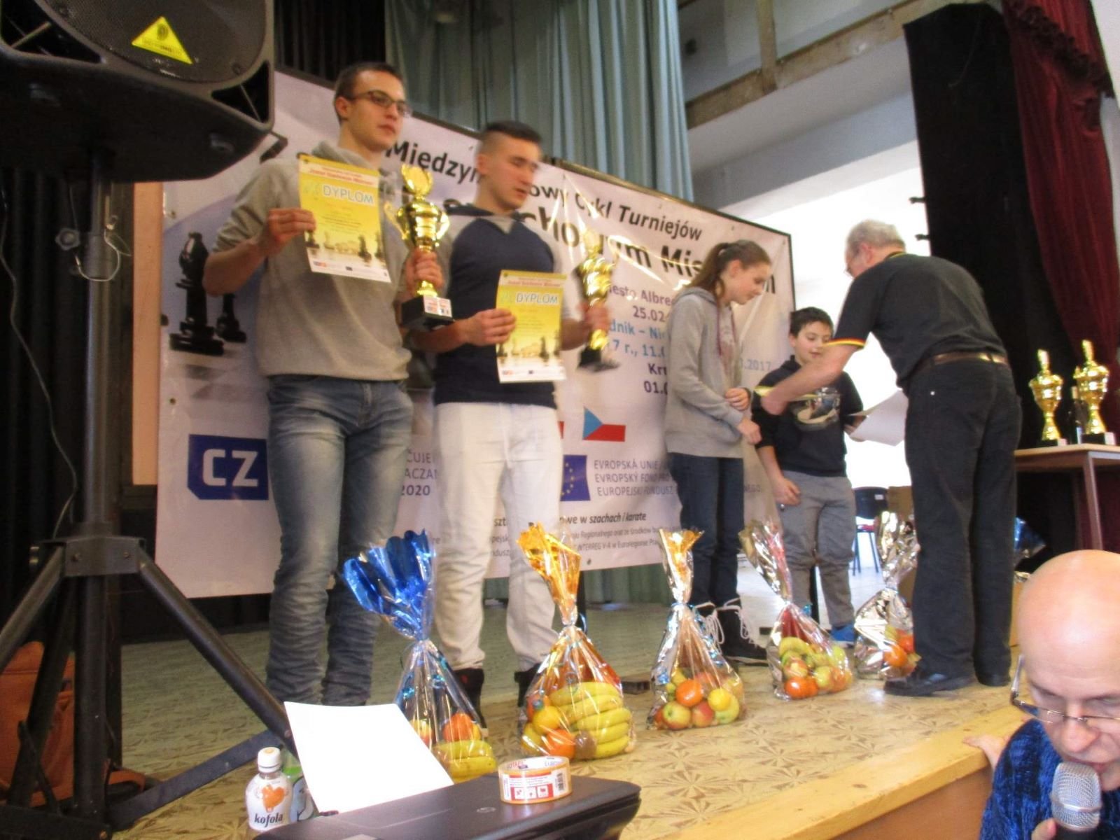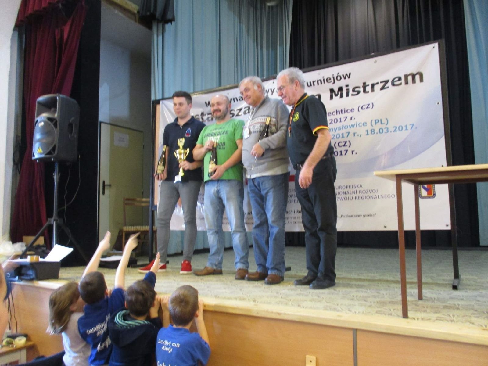 V sobotu 25.2.2017 začal v Třemešné 5.kolový mezinárodní šachový turnaj „Staň se šachovým mistrem“V sobotu 25.2.2017 proběhlo v Třemešné 1.kolo mezinárodního šachového turnaje „Staň se šachovým mistrem“. Turnaje se zúčastnilo celkem 103 šachistů všech věkových kategorií. Hrálo se tempem 2x15 minut na 7 kol.Náš klub reprezentovalo 7 šachistů a rozhodně se v mezinárodní česko-polské konkurenci neztratili. V kategorii A (roč.2009 a mladší) za náš klub nastoupil Gabriel Liewehr a obsadil krásné 8.místo z 20 účastníků se ziskem 4 bodů. V kategorii B (roč.2007-2008) nás reprezentovala Sára Tschuliková. Sárinka nastoupila po nemoci, ale na jejím výkonu to nebylo vůbec znát. V sedmi partiích uhrála 3,5 bodu a obsadila 17.místo z 31 účastníků a mezi děvčaty byla jen o půl bodu druhá. Bratři Robert a Kryštof Liewehrovi reprezentovali náš klub v nejpočetnější kategorii C (roč.2004-2006), které se zúčastnilo 34 šachistů. Oba předvedli v nabité konkurenci velmi dobré výkony a uhráli svorně 4,5 bodu díky kterým se umístil Robert na 9. a Kryštof na 10.místě. V kategorii D (roč.1999-2003) za náš klub nastoupila Míša Gvizdová. Ačkoliv Míša patřila věkem v této kategorii mezi nejmladší osadila se ziskem 3 bodů výborné 7.místo z 11.účastníků a mezi děvčaty byla dokonce první. Našim mladým nadějím dělal doprovod na turnaji jejich obětavý trenér Martin Šmida, který si zahrál v kategorii E (roč.1998 a starší) a se ziskem 3,5 bodu skončil na 4. místě ze 7 účastníků. Martinovi se podařilo porazit mezi jinými i svého bývalého trenéra Miloše Hudského, který skončil celkově třetí. Pětikolový turnaj pokračuje příští sobotu 4.3.2017 druhým kolem v polských Niemysłowicích. - fotografie z turnaje naleznete níže - v přiložených souborech naleznete kompletní výsledky všech kategorií