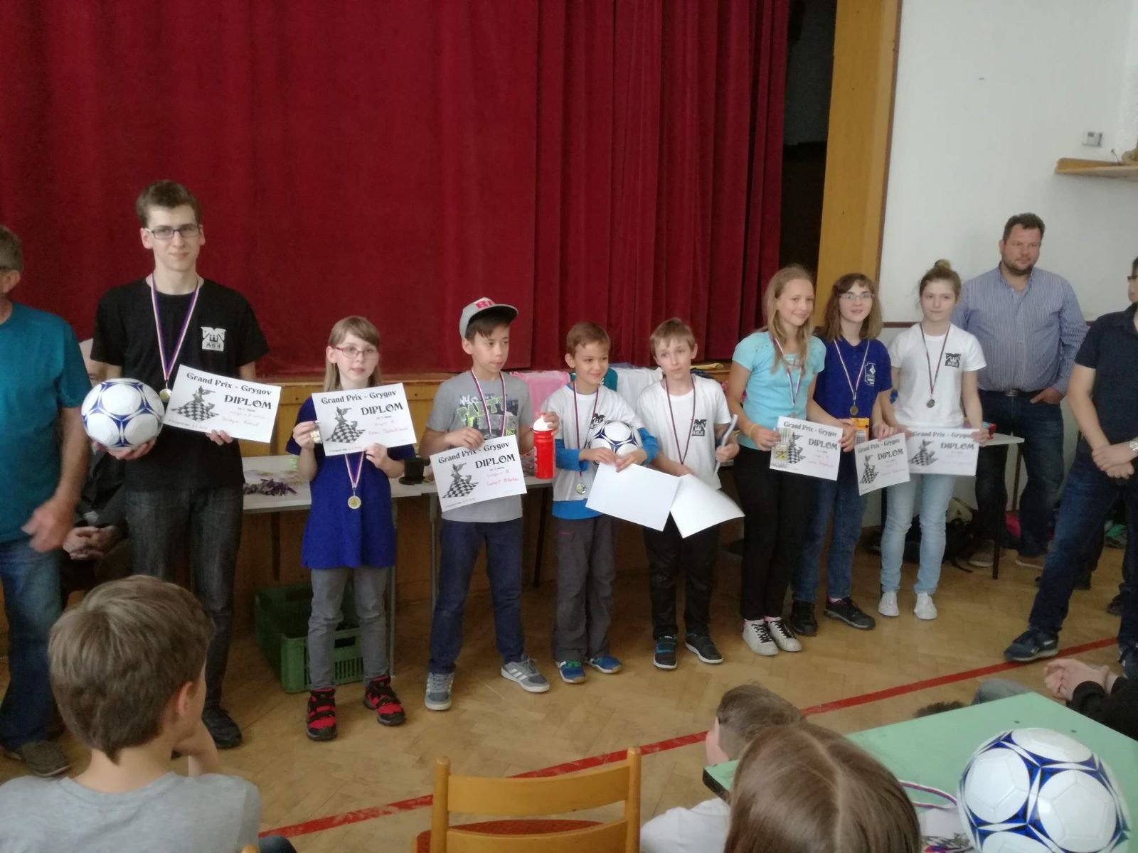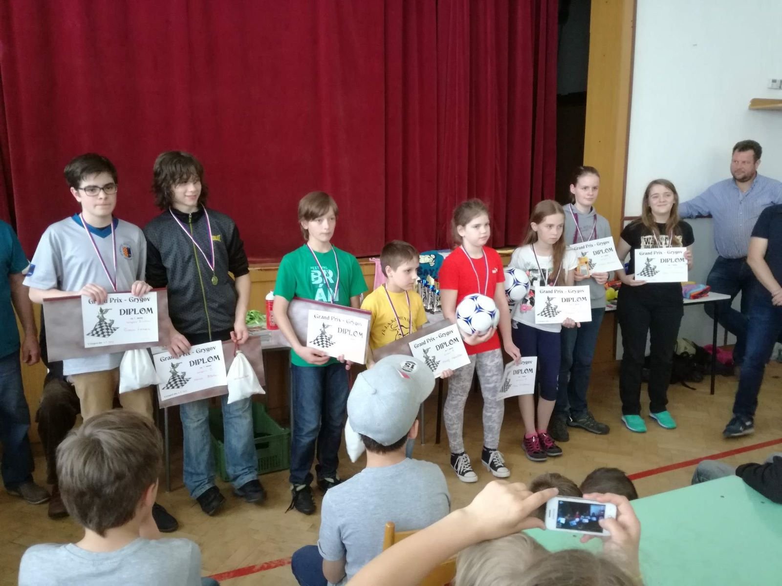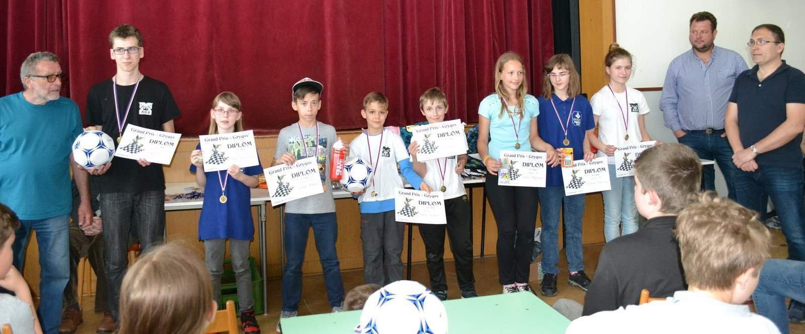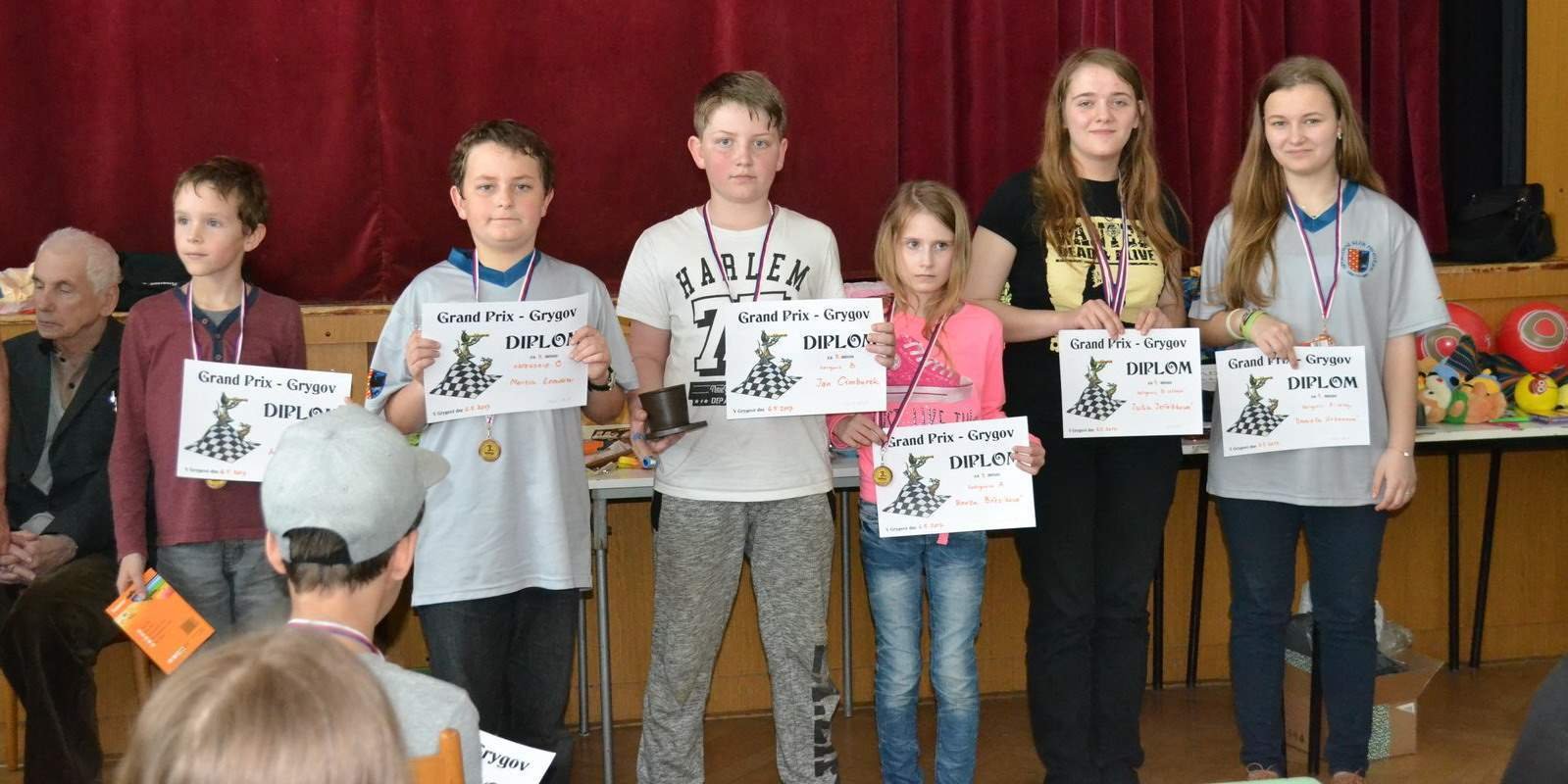 6.kolo Grand Prix mládeže v GrygověV sobotu 6.5.2017 bylo v Grygově odehráno poslední 6. kolo krajského přeboru mládeže v rapid šachu. Turnaj se hrál na 7 kol tempem 2 x 20 minut. Náš region reprezentovalo 16 mladých nadějí, z našeho klubu 9 a z SK Řetězárny Česká Ves 7. Mezi děvčaty obsadila v kategorii A 2.místo Sára Tschuliková z ŠK Jeseník. V kategorii B obsadil 3.místo Jan Cimburek a mezi děvčaty 1.místo Lenka Poljaková oba z SK Řetězárna Česká Ves. V kategorii C zvítězila mezi děvčaty Michala Gvizdová před Dominikou Tschulikovou obě z ŠK Jeseník. V Grygově bylo rovněž vyhlášeno celkové pořadí všech kol krajského přeboru. V kategorii B se umístili na 3.místě českoveští Jan Cimburek a Lenka Poljaková, Lenka mezi děvčaty. V kategorii C vybojovala 3.místo mezi děvčaty Michala Gvizdová z ŠK Jeseník. - fotografie z turnaje naleznete níže - v přiložených souborech naleznete kompletní výsledky všech kategorií - konečné výsledky celé série Grand Prix naleznete v odkaze: link