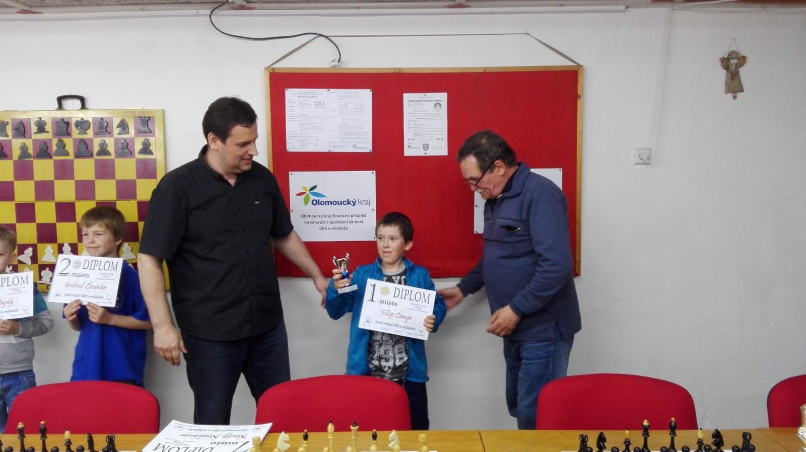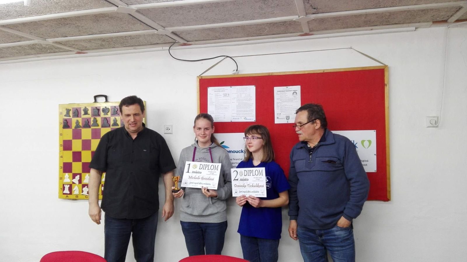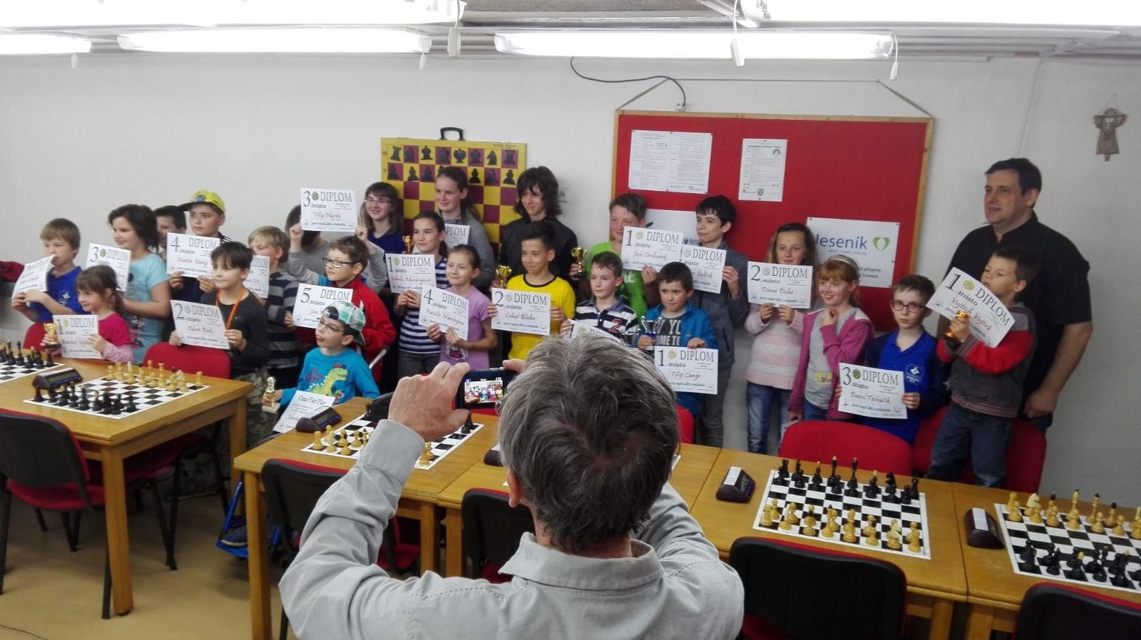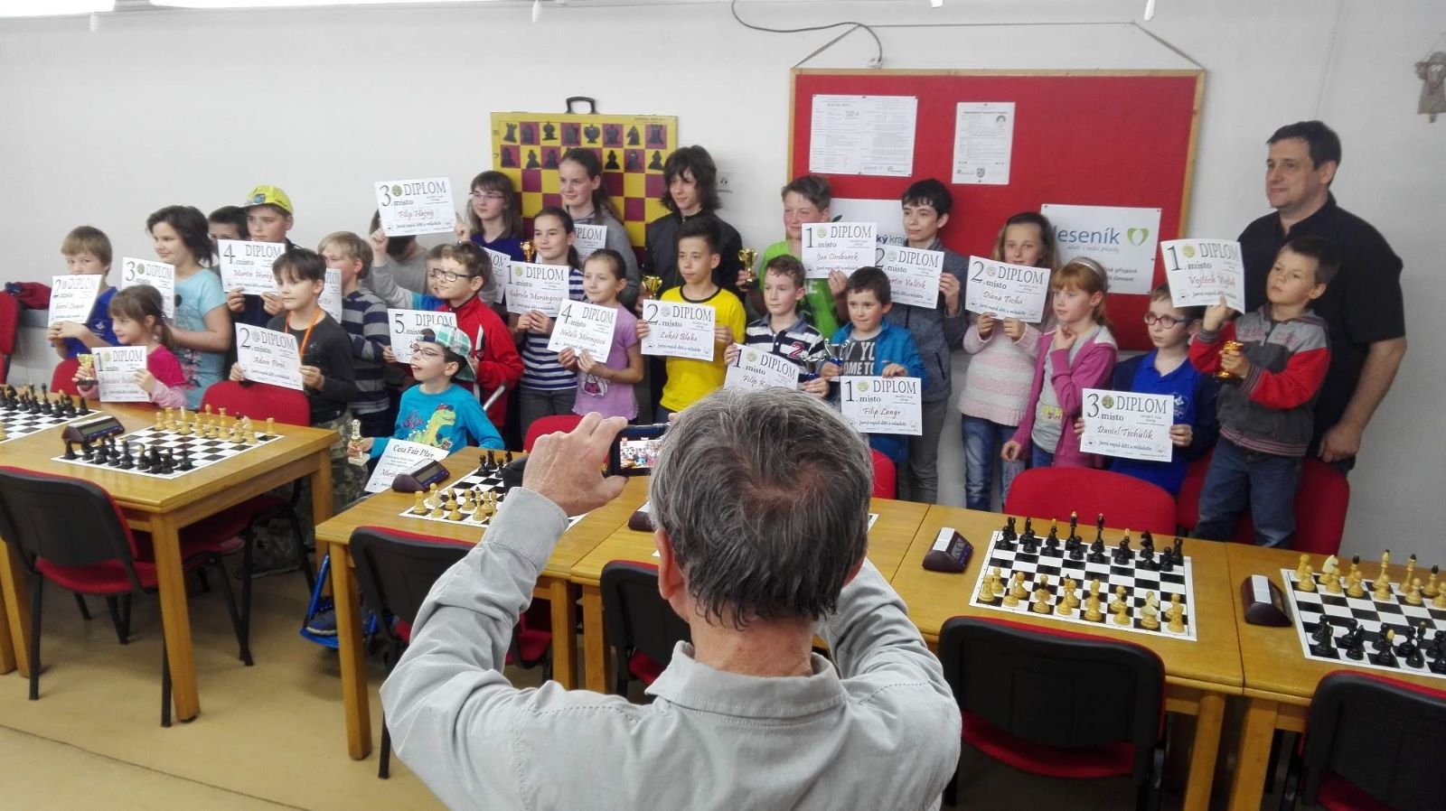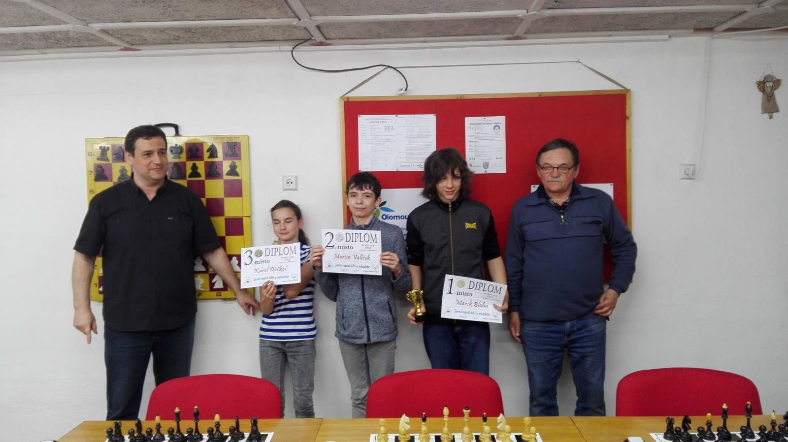 Jarní rapid dětí a mládeže v Jeseníku již zná své vítězeV sobotu 13.5.2017 byl v klubovně Šachového klubu Jeseník odehrán Jarní rapid dětí a mládeže. Turnaj zorganizoval ŠK Jeseník ve spolupráci s Petrem Krausem, který věnoval vítězům krásné poháry. Petr se nakonec ze zdravotních důvodů nemohl turnaje zúčastnit přesto mu patří velký dík za jeho obětavost a nezjištnost bez které by turnaj nemohl proběhnout. Jarní rapid se hrál tempem 2 x 15 minut na 7 kol a zúčastnilo se ho celkem 27 dětí z ŠK Jeseník, SK Řetězárny Česká Ves, TJ Zlaté Hory, TJ Sport Mikulovice, ŠK 1921 Zábřeh a ŠK Mohelnice. Turnaj se hrál ve třech skupinách. V první skupině proti sobě nastoupilo 8 statečných dívek. Ve druhé skupině bylo 11 chlapců do 10 let a ve třetí skupině 8 chlapců do 14 let. Podle získaných bodů ve skupinách byly poté vyhlášeny kategorie dívky do 9, 12 a 14 let a chlapci do 6, 8, 12 a 14 let. V kategorii dívek do 9 let zvítězila sedmiletá Stázinka Vojčáková z TJ Zlaté Hory se 4 body. Na 2. místě se umístila její sestra Cecilka Vojčáková (3 body), na 3. místě Kája Kolaříková (3 body) a na 4. místě Natálka Morongová (1 bod) obě z TJ Sport Mikulovice. V kategorii dívek do 12 let zvítězila Gabča Morongová (4 body) z TJ Sport Mikulovice, před Diankou Tichou (2 body) z ŠK Jeseník. V kategorii dívek do 14 let se umístila na 1. místě Míša Gvizdová (7 bodů) před Dominikou Tschulikovou (5 bodů) obě z ŠK Jeseník. V kategorii chlapců do 6 let obsadil 1. místo teprve pětiletý Votěch Vojčák z TJ Zlaté Hory, který v soubojích i z více jak o pěl let staršími šachisty získal úctyhodných 1,5 bodu. V kategorii chlapců do 8 let zvítězil Filip Langr (5 bodů) z ŠK Mohelnice. Na 2. místě se umístil Gabriel Liewehr (3 body) a na 3. místě Filip Hajný (2,5 bodu) oba z ŠK Jeseník. Kategorie do 10. let byla nejpočetnější. Mezi sedmi šachisty v této věkové kategorii byl nejlepší Filip Kopecký (7 bodů) z ŠK 1921 Zabřeh. Na 2. místě se umístil Adam Pírek (5 bodů) z SK Řetězárny Česká Ves, na 3. místě Daniel Tschulik (4,5 bodu) z ŠK Jeseník, na 4. místě Martin Klimeš (4 body) z ŠK 1921 Zábřeh, na 5. místě Jan Besler (4 body) z SK Řetězárny Česká Ves, na 6. místě Tomáš Krč (3,5 bodu) z TJ Zlaté Hory a na 7. místě Matěj Neubauer (2 body) z ŠK Jeseník. V kategorii do 12 let se umístil na 1. místě Jan Cimburek (7 bodů) z SK Řetězárny Česká Ves, na 2. místě Lukáš Blaha (5,5 bodu) z ŠK 1921 Zábřeh, na 3. místě Kryštof Liewehr (3 body) z ŠK Jeseník, na 4. místě Martin Horký (2,5 bodu) z ŠK Jeseník a na 5. místě Robert Liewehr (2,5 bodu) z ŠK Jeseník. V kategorii do 14 let zvítězil Marek Blaha (5,5 bodu), před Martinem Valíčkem (3 body) z SK Řetězárny Česká Ves a Karlem Dočkalem (1 bod) z TJ Sport Mikulovice. Na závěr byla vyhlášena cena fair play, kterou komise rozhodčích ve složení Pavel Koriťák ml, Eduard Till, Lubomír Matlocha st. a Miloš Hudský udělila Martinu Klimešovi z ŠK 1921 Zábřeh za houževnatost, příkladné chování, čistou a poctivou hru a dodržování zásad fair play. - fotografie z turnaje naleznete níže nebo v odkaze: link | |