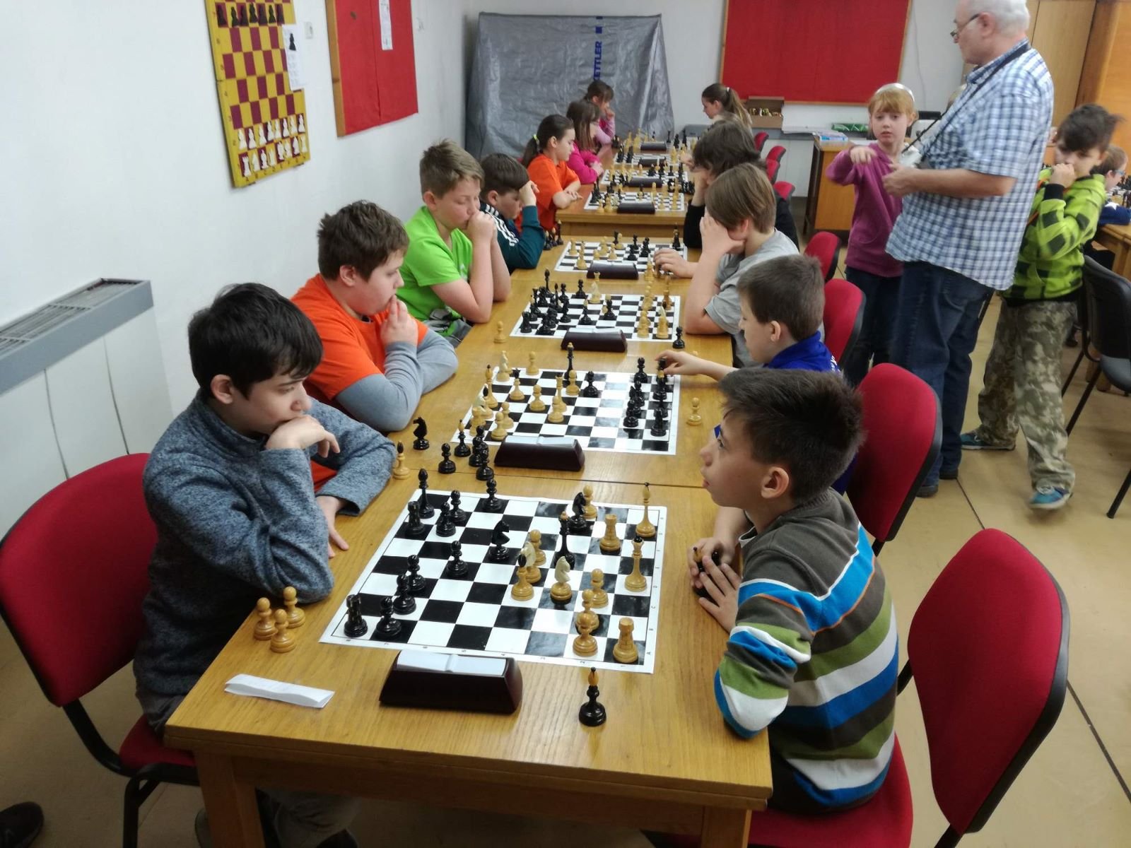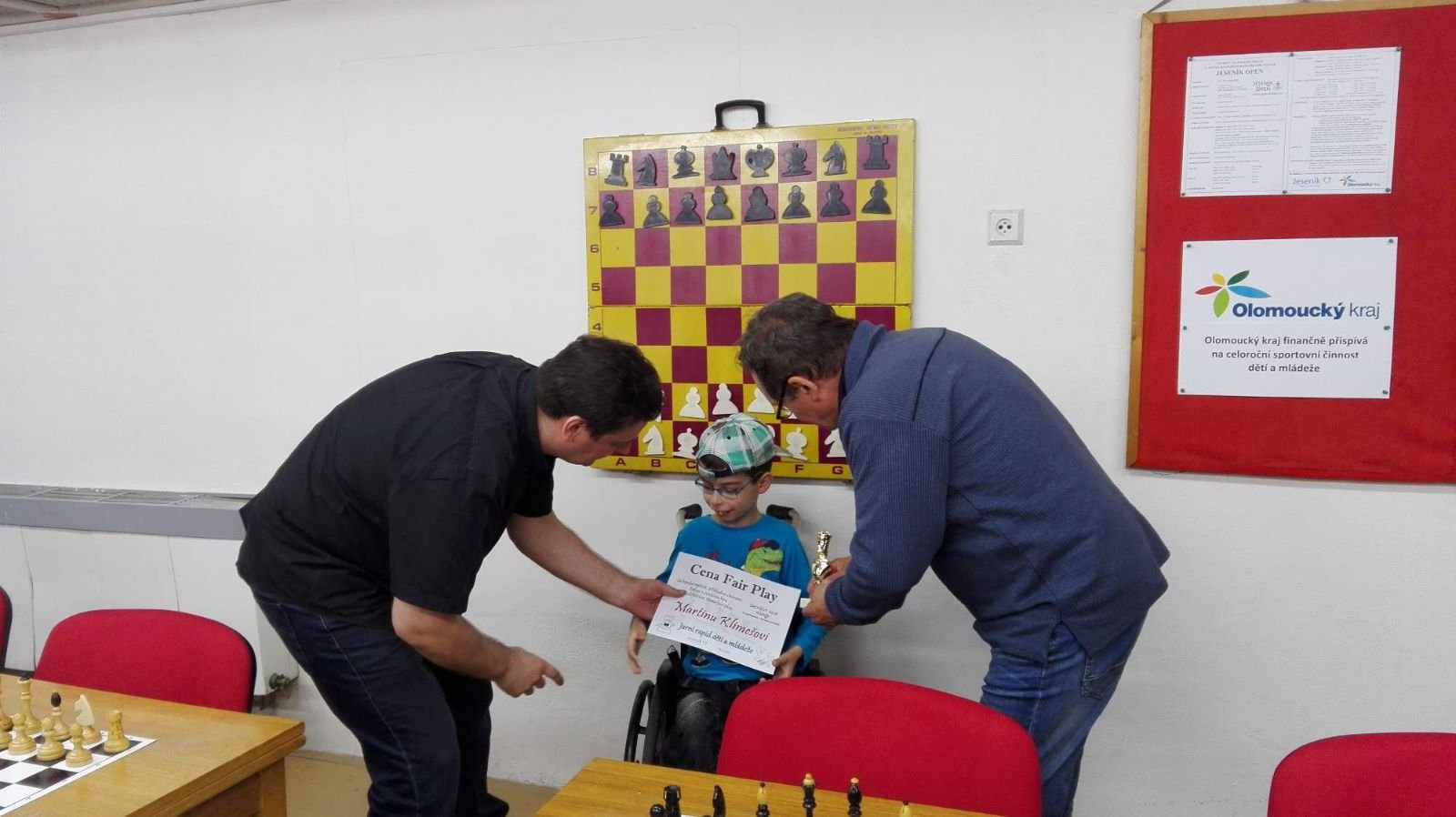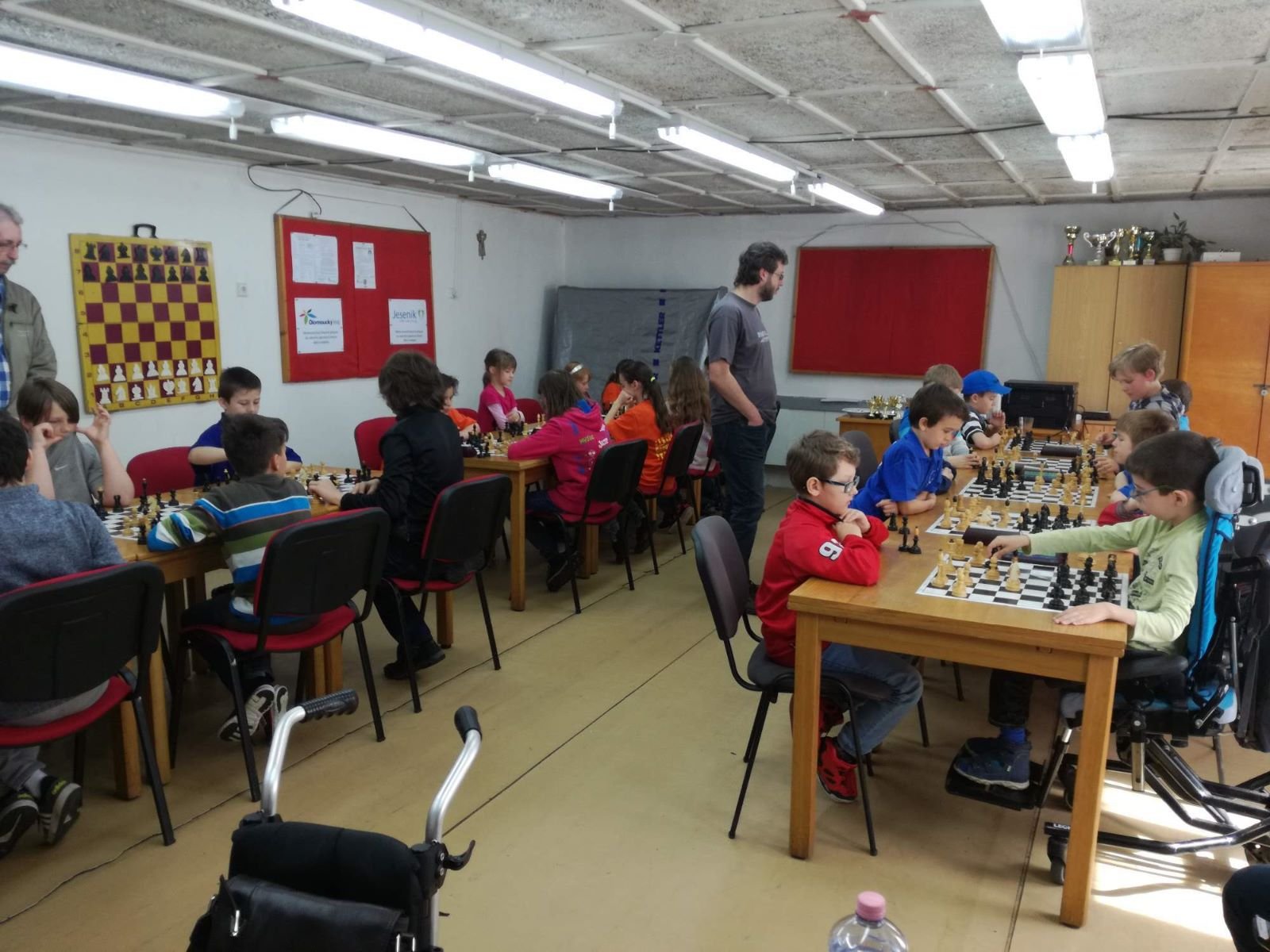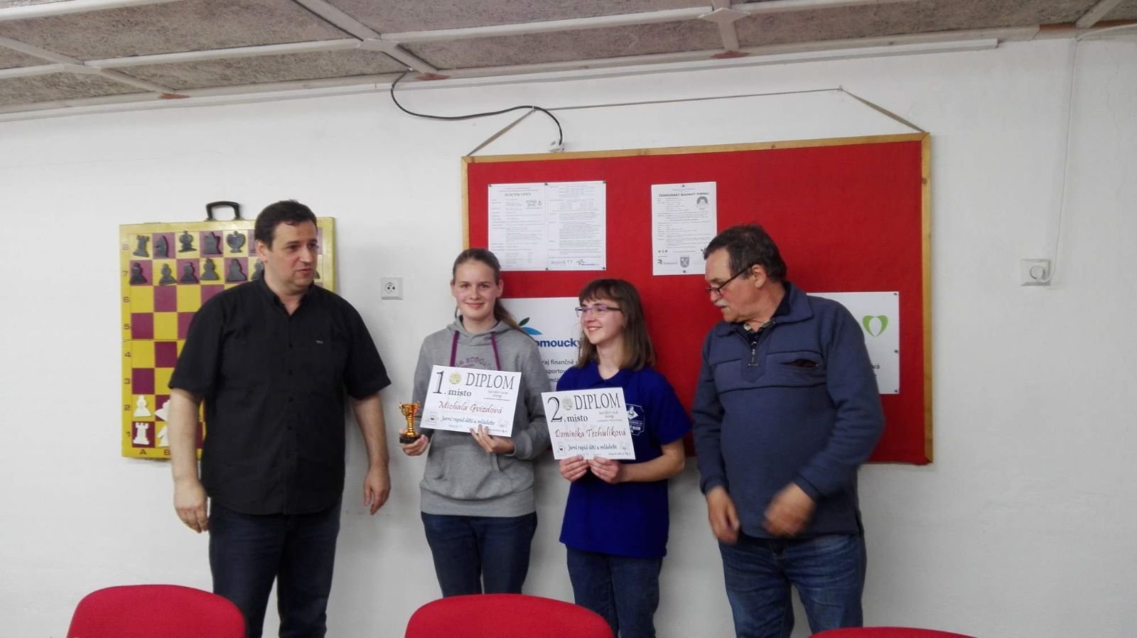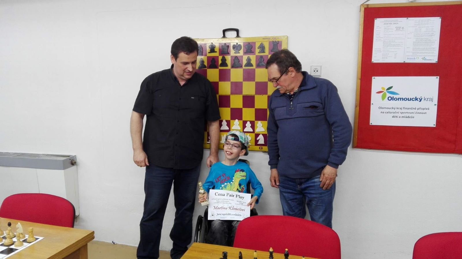 Jarní rapid dětí a mládeže v Jeseníku již zná své vítězeV sobotu 13.5.2017 byl v klubovně Šachového klubu Jeseník odehrán Jarní rapid dětí a mládeže. Turnaj zorganizoval ŠK Jeseník ve spolupráci s Petrem Krausem, který věnoval vítězům krásné poháry. Petr se nakonec ze zdravotních důvodů nemohl turnaje zúčastnit přesto mu patří velký dík za jeho obětavost a nezjištnost bez které by turnaj nemohl proběhnout. Jarní rapid se hrál tempem 2 x 15 minut na 7 kol a zúčastnilo se ho celkem 27 dětí z ŠK Jeseník, SK Řetězárny Česká Ves, TJ Zlaté Hory, TJ Sport Mikulovice, ŠK 1921 Zábřeh a ŠK Mohelnice. Turnaj se hrál ve třech skupinách. V první skupině proti sobě nastoupilo 8 statečných dívek. Ve druhé skupině bylo 11 chlapců do 10 let a ve třetí skupině 8 chlapců do 14 let. Podle získaných bodů ve skupinách byly poté vyhlášeny kategorie dívky do 9, 12 a 14 let a chlapci do 6, 8, 12 a 14 let. V kategorii dívek do 9 let zvítězila sedmiletá Stázinka Vojčáková z TJ Zlaté Hory se 4 body. Na 2. místě se umístila její sestra Cecilka Vojčáková (3 body), na 3. místě Kája Kolaříková (3 body) a na 4. místě Natálka Morongová (1 bod) obě z TJ Sport Mikulovice. V kategorii dívek do 12 let zvítězila Gabča Morongová (4 body) z TJ Sport Mikulovice, před Diankou Tichou (2 body) z ŠK Jeseník. V kategorii dívek do 14 let se umístila na 1. místě Míša Gvizdová (7 bodů) před Dominikou Tschulikovou (5 bodů) obě z ŠK Jeseník. V kategorii chlapců do 6 let obsadil 1. místo teprve pětiletý Votěch Vojčák z TJ Zlaté Hory, který v soubojích i z více jak o pěl let staršími šachisty získal úctyhodných 1,5 bodu. V kategorii chlapců do 8 let zvítězil Filip Langr (5 bodů) z ŠK Mohelnice. Na 2. místě se umístil Gabriel Liewehr (3 body) a na 3. místě Filip Hajný (2,5 bodu) oba z ŠK Jeseník. Kategorie do 10. let byla nejpočetnější. Mezi sedmi šachisty v této věkové kategorii byl nejlepší Filip Kopecký (7 bodů) z ŠK 1921 Zabřeh. Na 2. místě se umístil Adam Pírek (5 bodů) z SK Řetězárny Česká Ves, na 3. místě Daniel Tschulik (4,5 bodu) z ŠK Jeseník, na 4. místě Martin Klimeš (4 body) z ŠK 1921 Zábřeh, na 5. místě Jan Besler (4 body) z SK Řetězárny Česká Ves, na 6. místě Tomáš Krč (3,5 bodu) z TJ Zlaté Hory a na 7. místě Matěj Neubauer (2 body) z ŠK Jeseník. V kategorii do 12 let se umístil na 1. místě Jan Cimburek (7 bodů) z SK Řetězárny Česká Ves, na 2. místě Lukáš Blaha (5,5 bodu) z ŠK 1921 Zábřeh, na 3. místě Kryštof Liewehr (3 body) z ŠK Jeseník, na 4. místě Martin Horký (2,5 bodu) z ŠK Jeseník a na 5. místě Robert Liewehr (2,5 bodu) z ŠK Jeseník. V kategorii do 14 let zvítězil Marek Blaha (5,5 bodu), před Martinem Valíčkem (3 body) z SK Řetězárny Česká Ves a Karlem Dočkalem (1 bod) z TJ Sport Mikulovice. Na závěr byla vyhlášena cena fair play, kterou komise rozhodčích ve složení Pavel Koriťák ml, Eduard Till, Lubomír Matlocha st. a Miloš Hudský udělila Martinu Klimešovi z ŠK 1921 Zábřeh za houževnatost, příkladné chování, čistou a poctivou hru a dodržování zásad fair play. - fotografie z turnaje naleznete níže nebo v odkaze: link | |