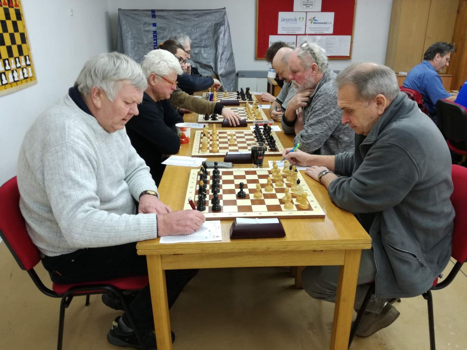 Naše Áčko je krůček od postupu do krajského přeboruV neděli 25.2.2018 bylo v klubovně ŠK Jeseník odehráno 9. kolo oblastního přeboru, ve kterém domácí přivítali ŠK Bohuňovice. Průběžně čtvrté Bohuňovice přijely v nejsilnější sestavě a tak jeseničtí neměli vůbec nic jistého. Zápas začal remízou Zdeňka Střechy s Danielem Telaříkem na 3. šachovnici. Po vítězství Mojmíra Telaříka nad Bedřichem Táborským na 7. šachovnici šli dokonce hostující do vedení 1,5:0,5. K obratu zavelel vítězstvím na 5. šachovnici zástupce kapitána domácích Lubomír Matlocha, který na 5. šachovnici porazil Jiřího Grúze. Další vítězství přidal na 4. šachovnici Vladimír Halama proti Josefu Peřinovi a poslal ŠK Jeseník do vedení 2,5:1,5. Po remíze Svatopluka Hastíka s Petrem Hejnarem na 1. šachovnici získal pro domácí další vítězství Pavel Kozák na 2. šachovnici, kde výbornou poziční hrou dostal svého soupeře Radka Telaříka do časové tísně, ve které dál zlepšoval svoji pozici až soupeři spadl praporek tah před jistým matem. Za stavu 4:2 měl ŠK Jeseník již jistou remízu. Na dalších dvou šachovnicích však stáli domácí o něco lépe, a nakonec obě partie dotáhli do vítězného konce. Nejprve zvítězil na 8. šachovnici Bedřich Výšek nad Miroslavem Hamplem a poté na 6. šachovnici domácí Petr Vraspír donutil Karla Hojgra vzdát partii, když nejprve vrátil soupeři získanou kvalitu za lepší pozici, kterou postupně vylepšil tak, že hostujícímu hráči nezbylo nic jiného než partii vzdát. ŠK Jeseník v důležitém zápase porazil ŠK Bohuňovice 6:2 a vzhledem k tomu, že ŠK Šternberk B podlehl zábřežskému Béčku stačí našemu Áčku k postupu do krajského přeboru zvítězit v jednom ze zbývajících dvou zápasů s Řetězárnou Česká Ves B a ŠK Šternberk B. - všechny výsledky 9. kola naleznete v odkaze zde - průběžnou tabulku po 9. kole naleznete v odkaze zde - fotografie ze zápasu naleznete v odkaze zde - článek z Jesenického týdeníku z 9. kola oblastního přeboru naleznete níže: | |