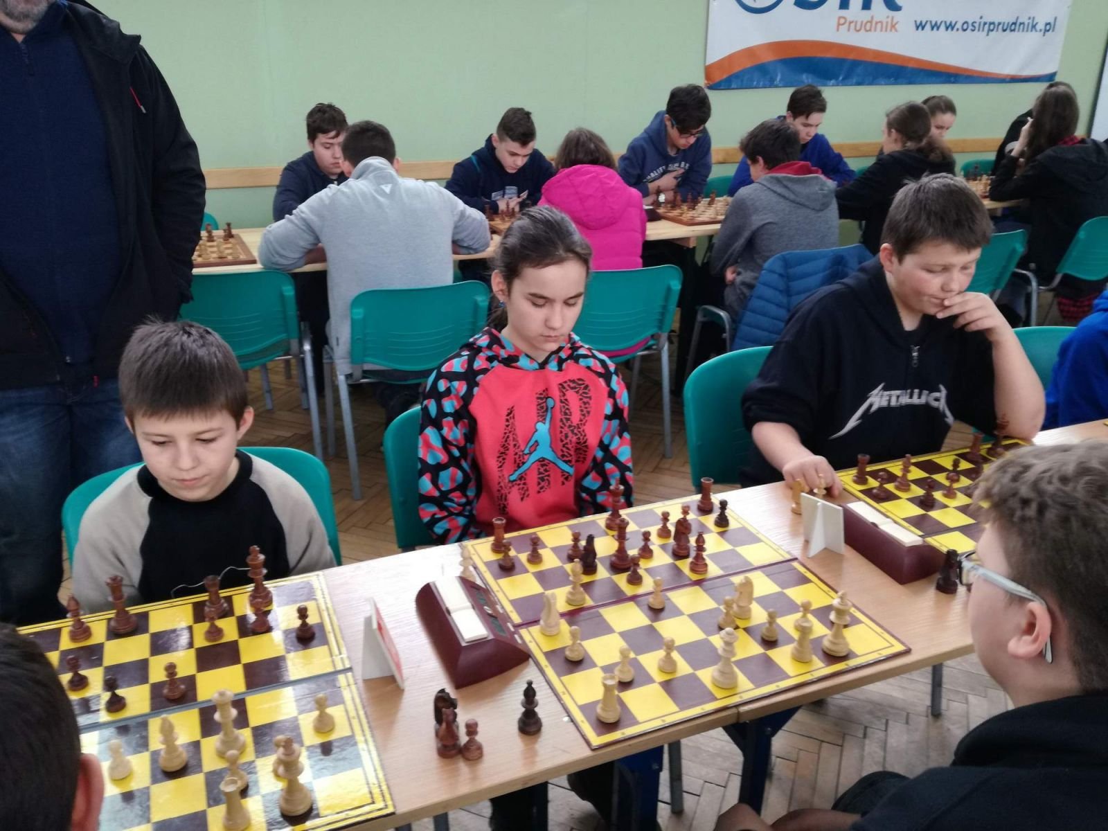 14 našich mladých nadějí má za sebou seriál tří turnajů v polských NiemyslowicíchV sobotu 17.3.2018 se v polských Niemyslowicích uskutečnilo závěrečné třetí kolo tradičního cyklu šachových turnajů pro děti a mládež Staň se šachovým mistrem. Turnaje se pravidelně účastní mladé šachové naděje z polských okresů Nysa a Prudnik a českých Jeseník a Bruntál. V posledním kole se ve čtyřech kategoriích utkalo celkem 99 šachistů. Hrálo se na 7 kol tempem 2 x 15 minut. Náš klub reprezentovalo 11 šachistů. V kategorii B se v konkurenci 51 hráčů umístila Karolína Kolaříková 20. se 4 body, Natálie Morongová 32. se 3 body a Gabriel Liewehr 33. se 3 body. V kategorii C se v konkurenci 26 šachistů umístil Robert Liewehr na 9. místě se ziskem 4 bodů, Kryštof Liewehr 15. se 3 body, Gabriela Morongová 18. se 3 body, Marin Horký 19. se 3 body a Sára Tschuliková 22. se 2 body,. V kategorii D se v konkurenci 14 hráčů umístila Míša Gvizdová na 10. místě se ziskem 3,5 bodů, Dominika Tschuliková 13. s 1 bodem a Karel Dočkal 14. s 0,5 bodem. Na závěr bylo vyhlášeno také celkové pořadí, ve kterém se každému hráči započítávali 2 nejlepší turnaje. Náš klub reprezentovalo celkem 14 šachistů. V kategorii B se v konkurenci 67 hráčů umístil Daniel Tschulik 13.-14. se 17,5 body, Karolína Kolaříková 25. s 11 body (3. mezi dívkami), Natálie Morongová 33.-37. s 8 body a Gabriel Liewehr 33.-37 s 8 body. V kategorii C se v konkurenci 47 šachistů umístil Robert Liewehr na 7.-8. místě se ziskem 30,5 bodu, Sára Tschuliková 18. s 12 body (3. mezi dívkami), Kryštof Liewehr 19. s 11,5 body, Tichá Diana 21. s 10,5 body, Gabriela Morongová 26-27. s 8 body a Marin Horký 32.-35. se 4 body (hrál pouze jeden turnaj). V kategorii D se v konkurenci 19. hráčů umístila Míša Gvizdová na 10. místě se ziskem 23 bodů (2. mezi dívkami), Dominika Tschuliková 13.-14. se 13 body (3. mezi dívkami), Martin Valíček 16. s 12 body a Karel Dočkal 17. s 10,5 body. - výsledky kategorie B 3. kolo celkové pořadí - výsledky kategorie C 3. kolo celkové pořadí - výsledky kategorie D 3. kolo celkové pořadí - fotografie z turnaje 1. kolo 3.3.2018 2. kolo 10.3.2018 3. kolo 17.3.2018 | |
