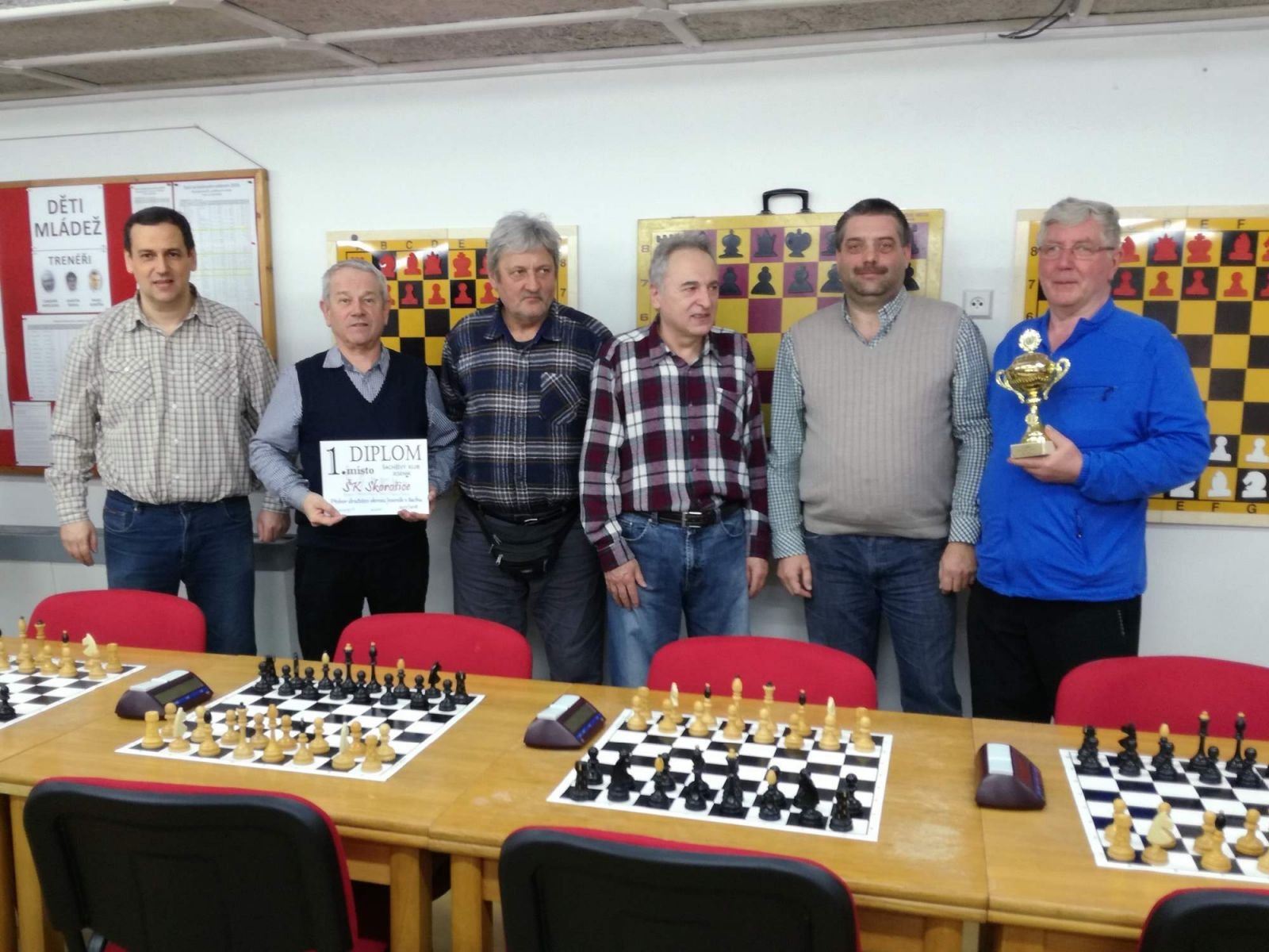 Družstvo ŠK Skorošice obhájilo titul přeborníka okresu Jeseník v šachuV sobotu 24.3.2018 bylo v klubovně ŠK Jeseník odehráno finále a zápas o 3. místo Přeboru družstev okresu Jeseník v šachu. Ve finále se utkali obhájce titulu přeborníka družstvo ŠK Skorošice s ŠK Jeseníkem B a v zápase o třetí místo ŠK Jeseník D s SK Řetězárnou Česká Ves C. V zápase o třetí místo bylo českoveské Céčko favoritem a mladé naděje z jesenického Déčka doplněné o zkušeného Lubomíra Matlochu ml. mohly jen překvapit. Favorité z České Vsi však žádnou zápletku nedovolili a díky vítězstvím Pavla Frkáně, Štefana Šulka, Emila Turoně a Radomíra Čupra rozhodli o tom, že českoveské Céčko vybojovalo v tomto ročníku okresního přeboru 3. místo. V poslední partii na 1. šachovnici jesenický Lubomír Matlocha ml. porazil Jaroslava Tilla a zkorigoval tak skóre na konečných 4:1 pro družstvo Řetězárna Česká Ves C. Finále bylo o poznání dramatičtější. Skorošice se nejprve ujali vedení díky výhře Miroslava Čecháčka nad Bedřichem Výškem na 2. šachovnici. Jesenickému béčku se podařilo vyrovnat na 1. šachovnici, kde Bedřich Táborský v dramatické útočně laděné partii porazil Zdeňka Rychlíka. Ovšem družstvo ŠK Skorošice šlo záhy opět do vedení, když Milan Macík na 4. šachovnici porazil Jana Bartusíka. Jesenické Béčko vzhledem k horšímu umístění v základní části potřebovalo k zisku titulu přeborníka zápas vyhrát, zatímco Skorošicím stačila remíza, a tak ve zbylých dvou partiích se bojovalo do posledního dechu. Josefu Valákovi ze Skorošic se nakonec povedlo na 5. šachovnici dokonale zabetonovat pozici, a tak Jirkovi Málkovi nezbylo nic jiného než přijmout remízu což znamenalo, že borci z ŠK Skorošice mohli začít slavit. Poslední partie mezi Milanem Šmoldasem a Jiřím Walákem skončila také remízou, a tak se družstvo ŠK Skorošice po vítězství 3:2 stalo zaslouženě přeborníkem okresu Jeseník a obhájilo titul z minulého roku. - výsledky na všech šachovnicích finále a zápasu o 3. místo naleznete zde - fotografie z finále a zápsu o 3. místo naleznete v odkaze zde | |
