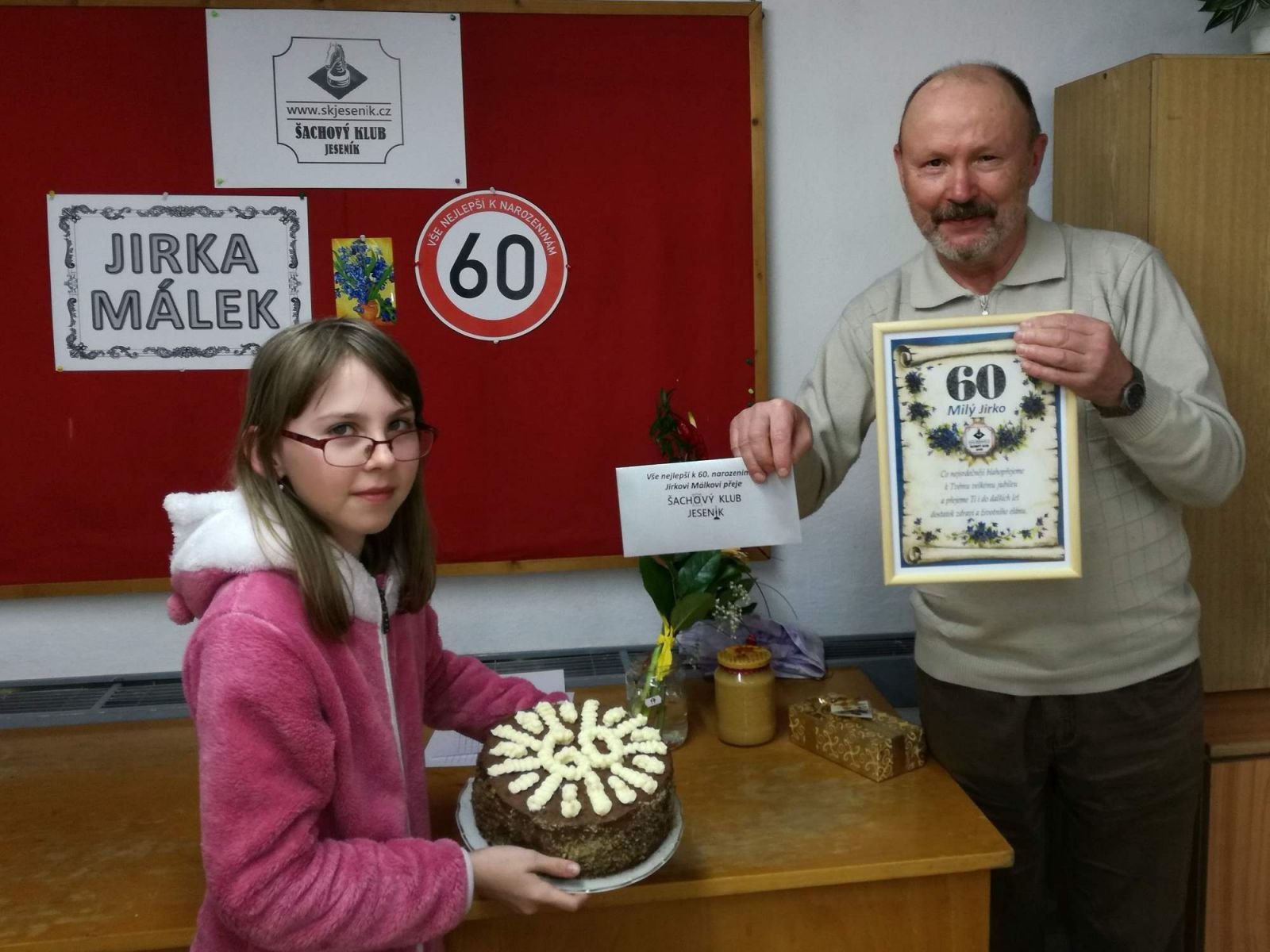 Oslava 60. narozenin Jirky Málka se vydařilaVe čtvrtek 5.4. jsme v naší klubovně oslavily 60. narozeniny Jirky Málka. V rámci oslav byl také odehrán tradiční turnaj v bleskovém šachu dětí a dospělých kde více než o výsledky šlo o dobrou zábavu a utužení přátelských vztahů mezi našimi členy. Oslavy se zúčastnilo 32 členů z toho si zahrálo turnaj 26 členů. V bleskovém turnaji dospělých byla rozdána dvě první místa (Lubomíru Matlochovi a oslavenci Jirkovi Málkovi) a tři druhá místa (Pavlu Kozákovi, Radku Gondekovi a Zdeňku Střechovi). V kategorii dětí zvítězila Gabriela Morongová před Karlem Dočkalem a bratry Robertem a Kryštofem Liewehrovými. Během oslavy zahrál na kytaru a zapěl několik krásných písniček Jarda Halama. Největší úspěch, zejména u dětí, měli Nohavicovi Tři čuníci. Během oslav panovala mezi přítomnými výborná nálada a jelikož jubilant zajistil všem také bohaté a chutné občerstvení oslavám skutečně nic nechybělo. - fotografie z oslavy naleznete v odkaze zde | |