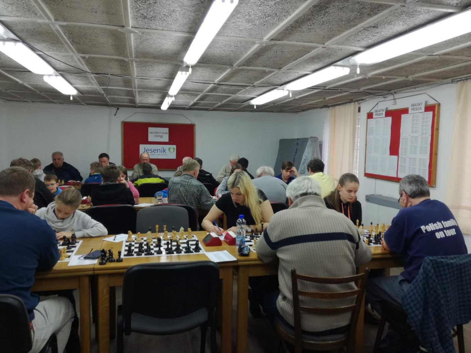 Jesenický přebor družstev má za sebou 5. a 6. koloV sobotu 8.12.2018 pokračoval 5. a 6. kolem Jesenický přebor družstev ročníku 2018/2019. V tomto dvojkole mělo volno družstvo ŠK Skorošice. Tři ze šesti zápasů se opět hrály na elektronických šachovnicích a můžete si je přehrát v odkazech níže. Opět nebyla nouze o kvalitní a dramatické partie. Celkem 31 hráčů si ve 30 partiích nic nedarovalo. Nejvíce se dařilo družstvům SK Řetězárna C a ŠK Jeseník C a D, které vyhrály oba své zápasy. Co se týče individuálních výkonů tak se dvěma vítězstvími ve svých partiích blýsklo kompletní društvo SK Řetězárna C ve složení Radomír Čupr, Jaroslav Till, Emil Turoň, Jan Cimburek a Štefan Šulek. Dále zvítězili v obou svých partiích Pavel Koriťák st., Bogdan Kolodziej (oba ŠK Jeseník D), Milan Šmoldas, Jan Bartusík a Zdeněk Suchánek (všicni tři ŠK Jeseník C). Za zmínku stojí rovněž vítězství mladých nadějí Karla Dočkala v pátém a Martina Valíčka v šestém kole, kde se jim podařilo porazit své zkušené a favorizované soupeře. • 5. a 6. kolo - 09.12.2018 - výsledky a průběžné pořadí - - fotogalerie - • online přenos 5. kola (ŠK Jeseník C - ŠK Jeseník G a SK Řetězárna C - ŠK Jeseník F) naleznete v odkaze zde • online přenos 6. kola (ŠK Jeseník G - SK Řetězárna C) naleznete v odkaze zde • zápasy 5. kola si můžete přehrát také se zapnutým motorem (engine): • zápasy 6. kola si můžete přehrát také se zapnutým motorem (engine): • vše o přeboru nalezne zde | |